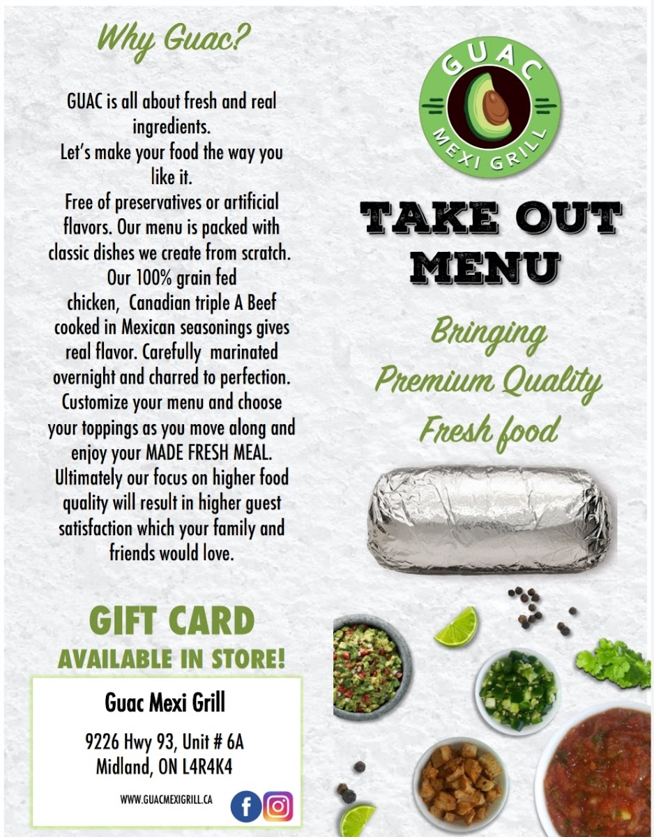 Welcome to Guac Mexi Grill Midland, your go-to spot for fresh and flavorful Mexican cuisine located at 9226 ON-93, Midland, ON. Known for its friendly atmosphere and quality dishes, this vibrant eatery is a beloved local favorite.